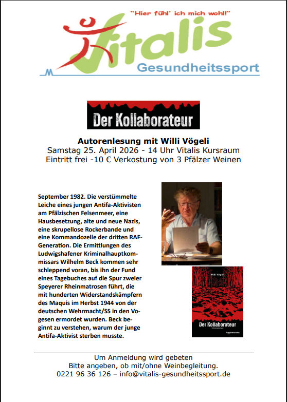 Am 25. April 2026 um 14 Uhr erwartet Sie im Vitalis Kursraum eine inspirierende Lesung mit dem Autor Willi Vögeli.